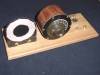 The coil has 33 turns of 40/44 litz wire. The hub of the form is 4 inches long and one inch wide. I used a compass to draw the circles. All the cuts were made with a scroll saw and carefully sanded with a 1 inch belt sander. I made the slots a little wider by letting the 1 inch belt sander do it's work. Please be gentle using the sander on the styrene. The total size of the form is 6 inches by 3 inches. The diode tap is at around 25 turns from the grounded end. Please refer to the circuit diagram in my #12 set. Only the coil is different.