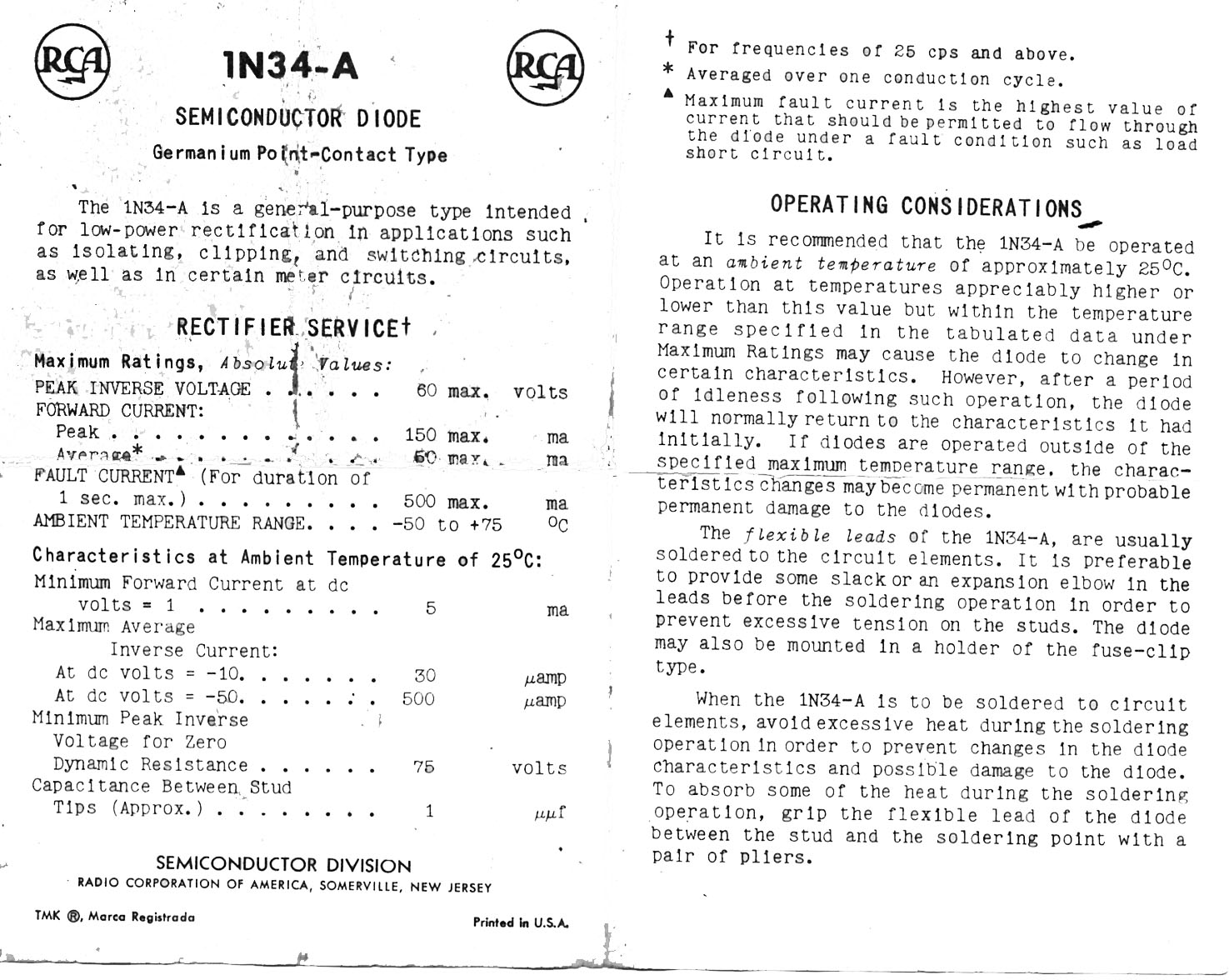 Here are a couple of pages showing the early specs of a 1N34A diode. Click on the image to get the big view. (357k, 78k)
