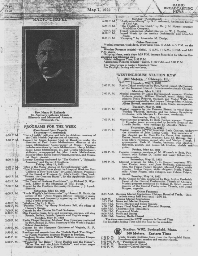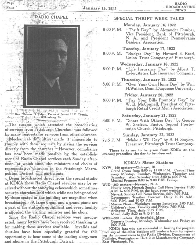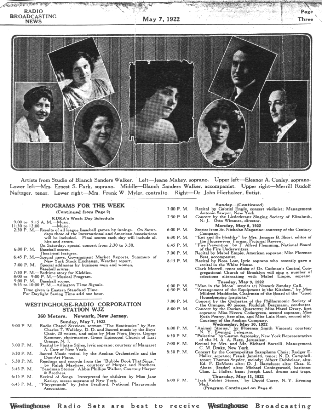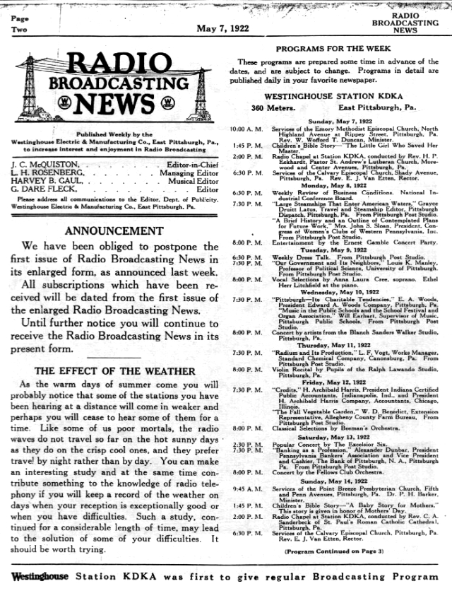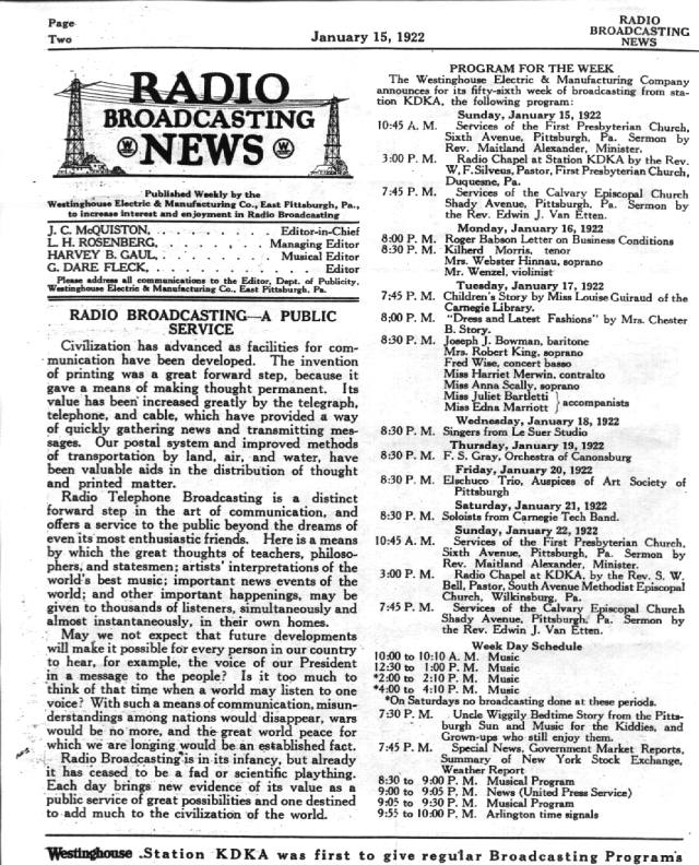 Here are some scans of the Radio Broadcasting News from the early 1920's. Each pamphlet is 4 pages. They feature the old time broadcasting of KDKA, with program schedules. Use your back key to return to this page. Enjoy!