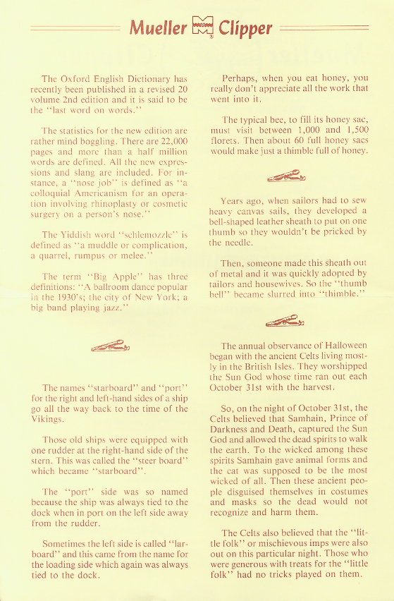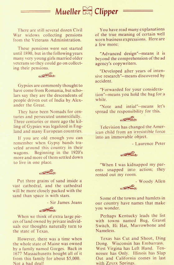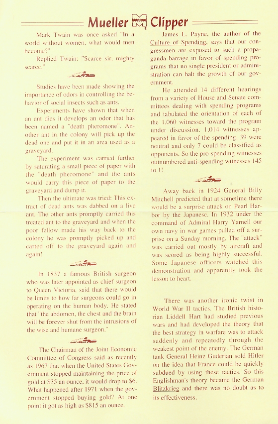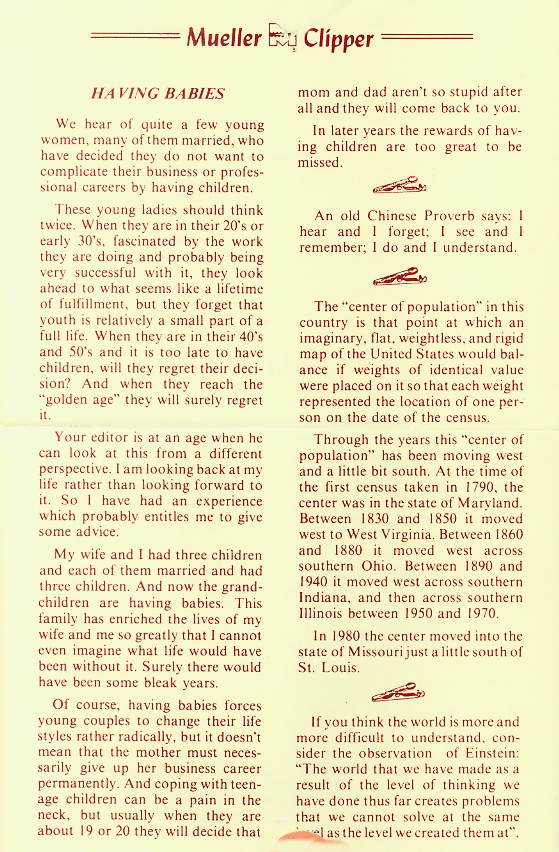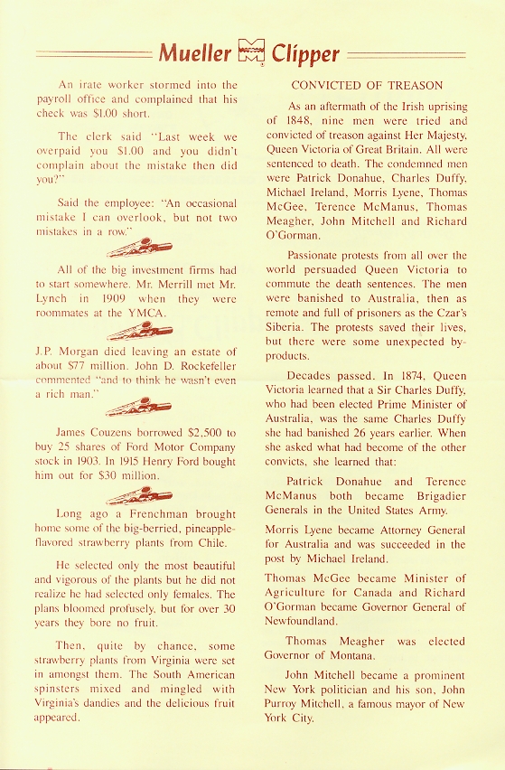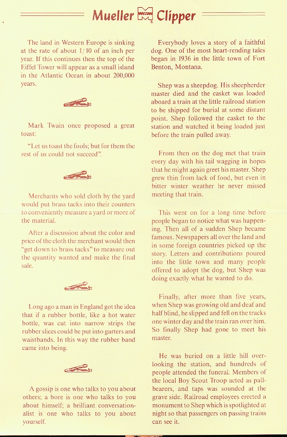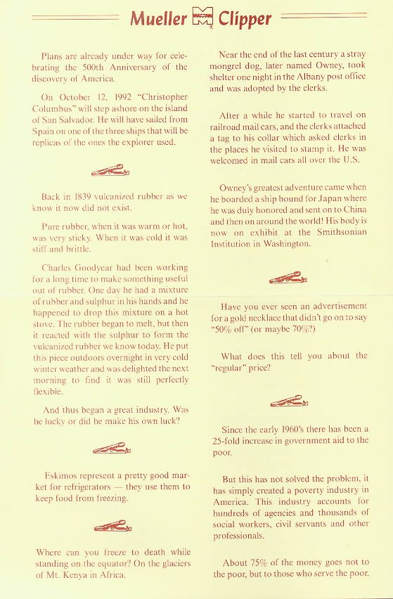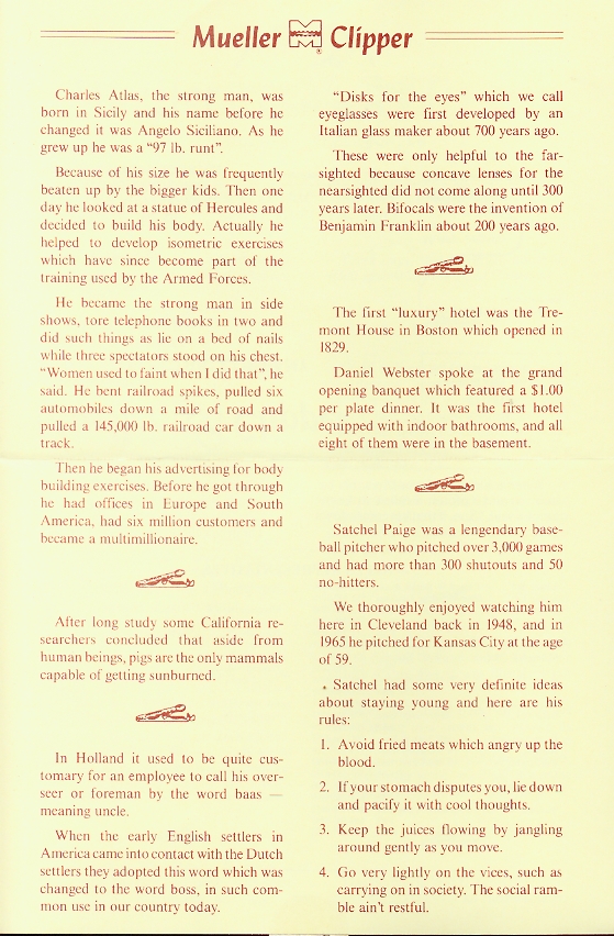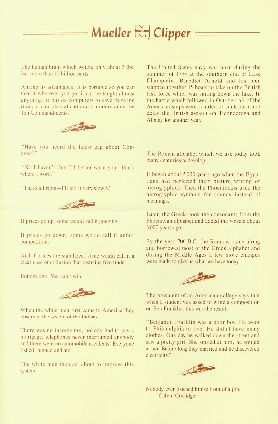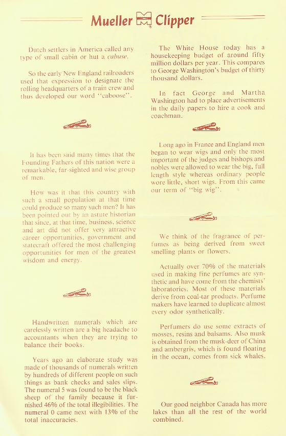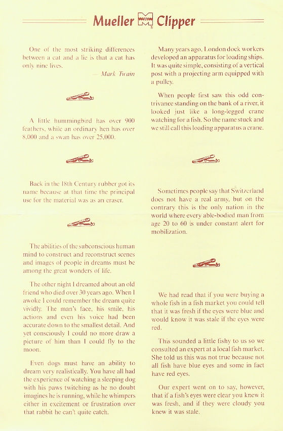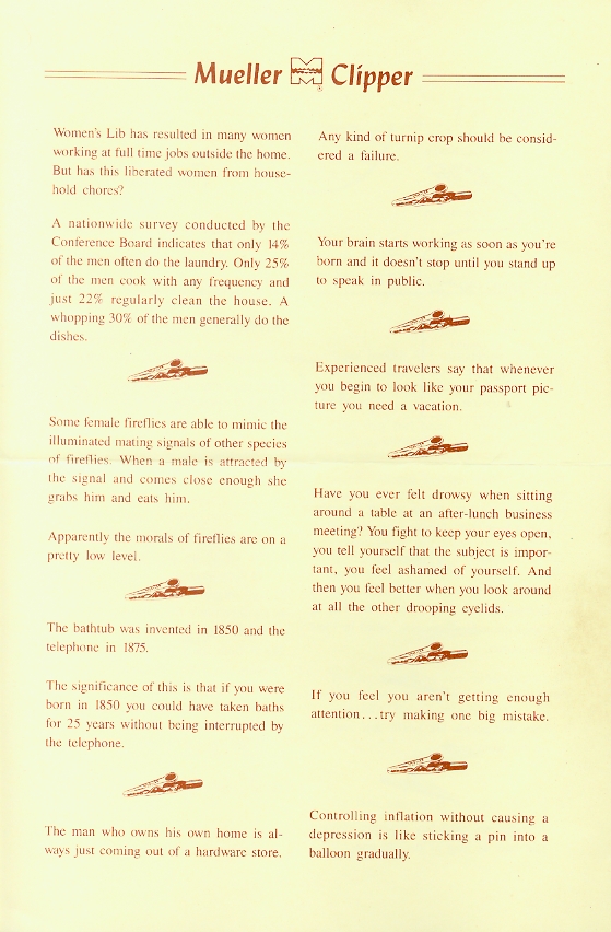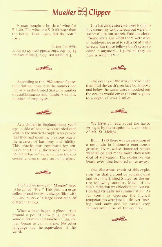 Have you ever done a Google search and come up empty? This is what happened when I attempted to look up more information on The Mueller Clipper. The Mueller Clipper was a newsletter that was published by the Mueller Electric Co., maker of fine quality alligator clips. As a distributor of their products, we would receive these quarterly newsletters. It was always a welcomed event when the Lou, the postman brought the MC.