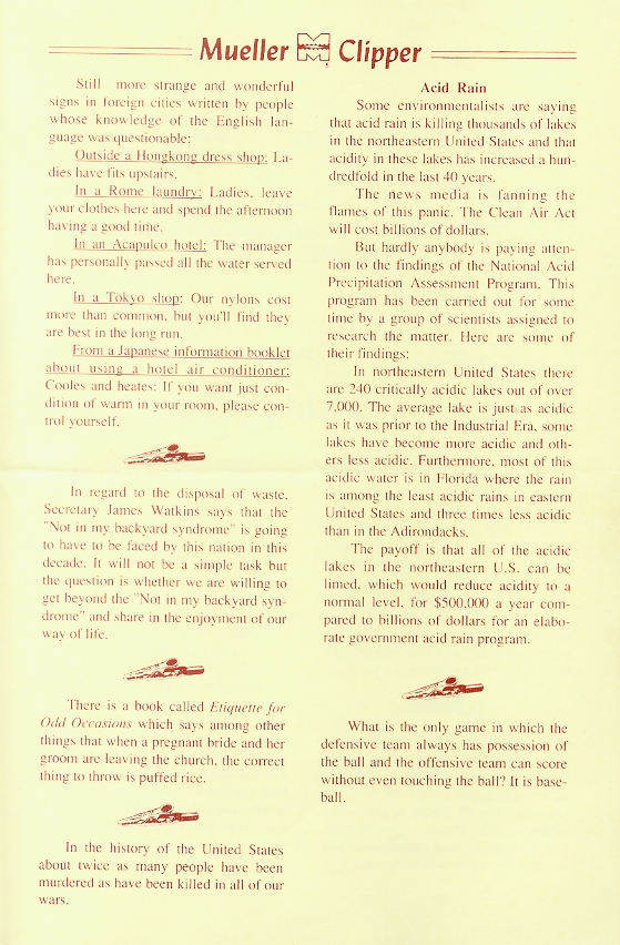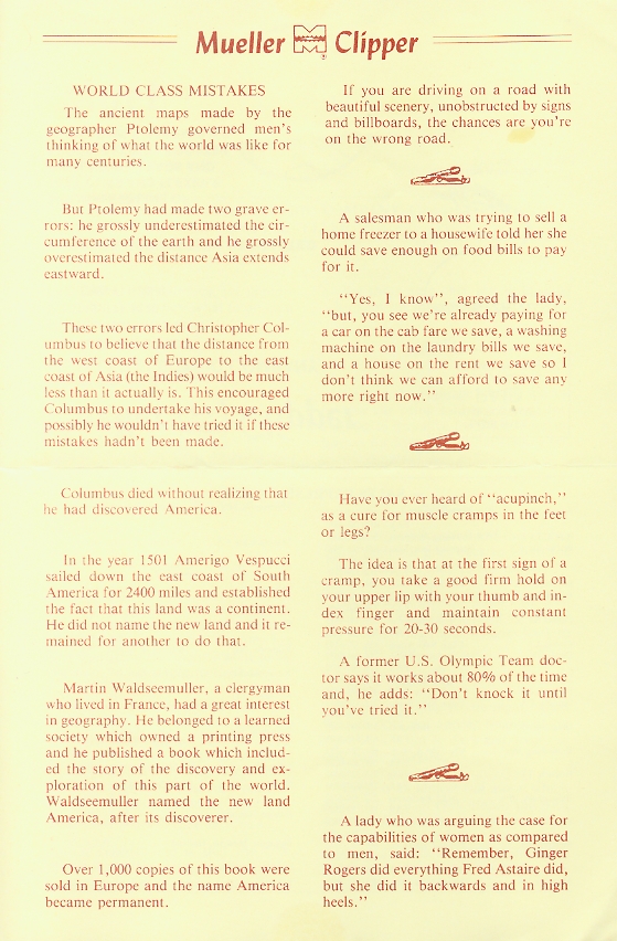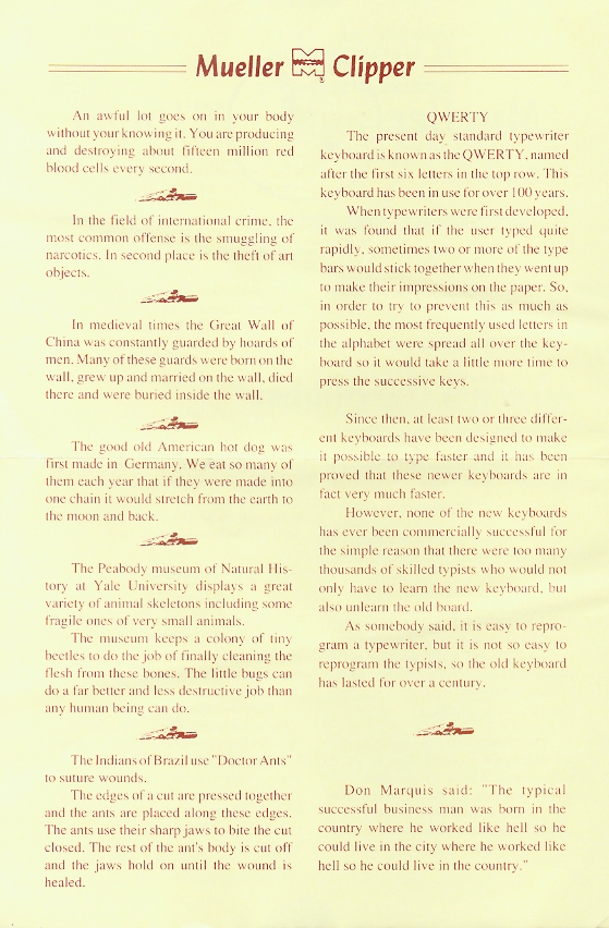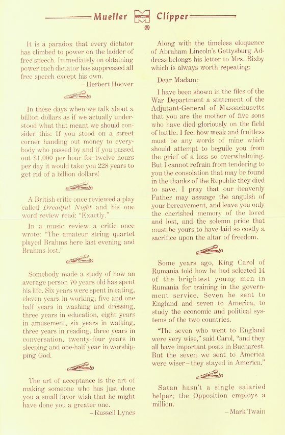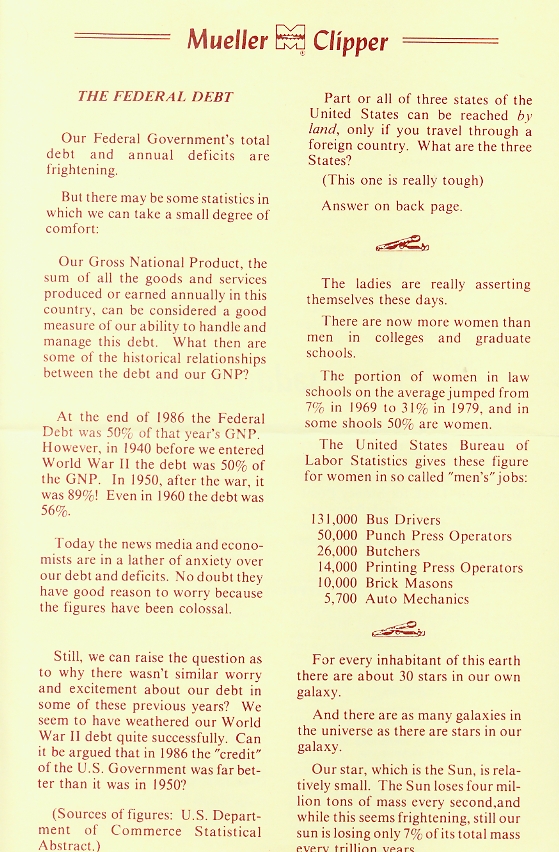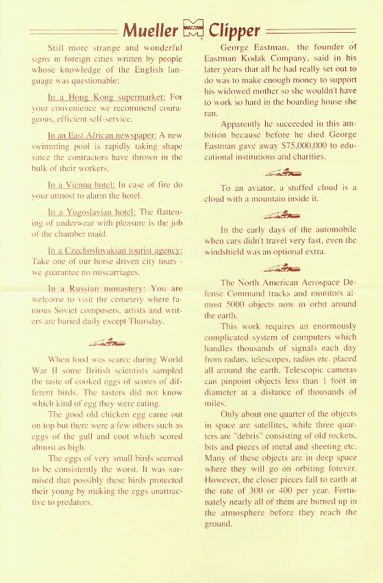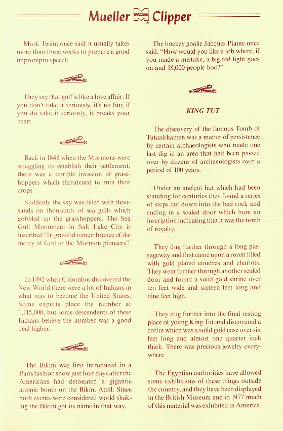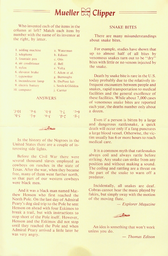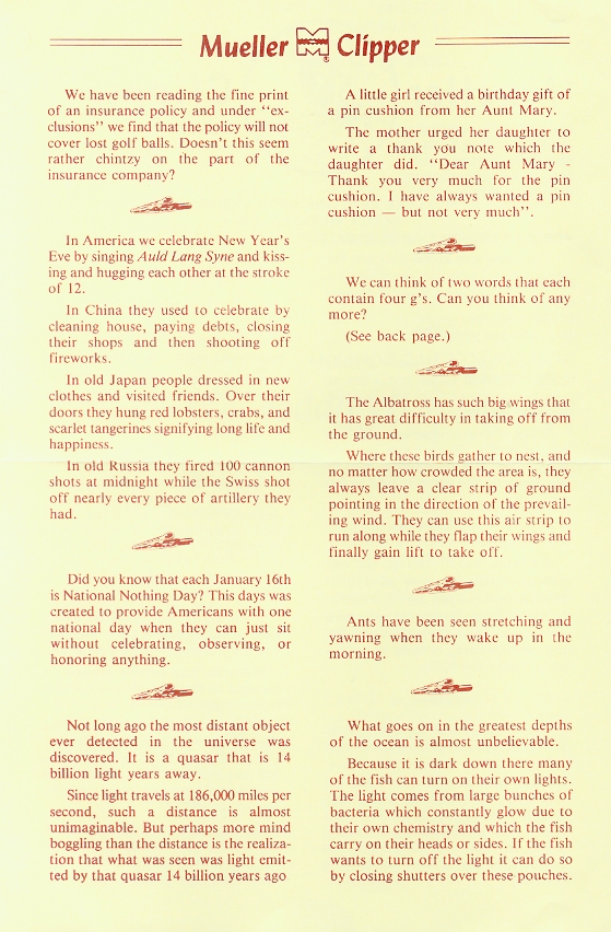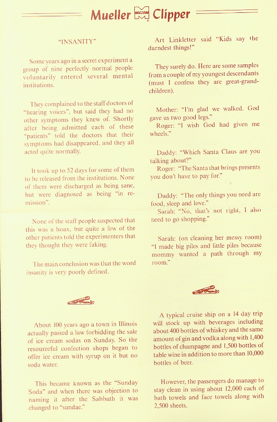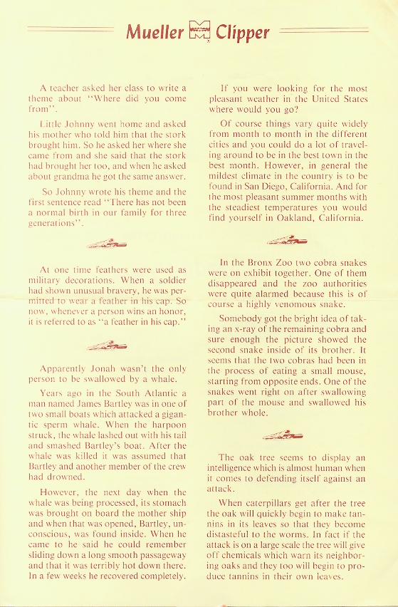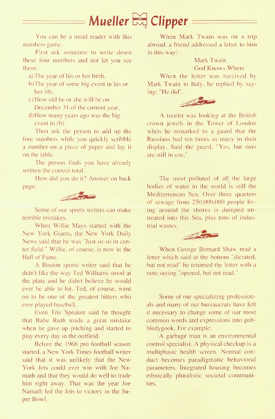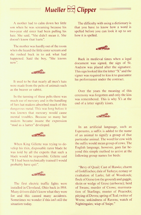 Have you ever done a Google search and come up empty? This is what happened when I attempted to look up more information on The Mueller Clipper. The Mueller Clipper was a newsletter that was published by the Mueller Electric Co., maker of fine quality alligator clips. As a distributor of their products, we would receive these quarterly newsletters. It was always a welcomed event when the Lou, the postman brought the MC.