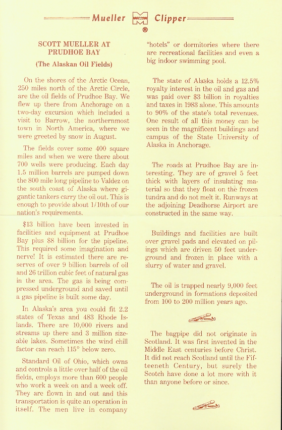 This publication began in 1929 by Scott Mueller's dad. It sadly ended in 1992 upon the death of Scott Mueller. I don't think the company was ever the same again. These are non technical publications. They didn't directly promote Mueller, but it kept their name in our minds. I am not sure how far the distribution of these were, but I would like to share them with you. Each page file is 350-400 k in size. The entire series that I have takes about 35 mb. Click on each link and when the picture is there (JPG file), right click to save as... . Then return to this page with your back button.