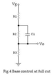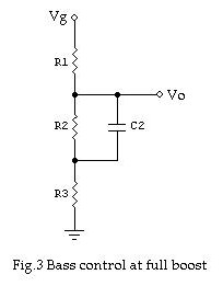 With full bass boost (R2´s slider at the upper end), the equivalent circuit for the tone control is as depicted by fig.3.