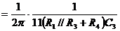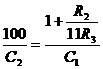 From expression (10), with the value chosen for R4 we obtain C3 = 774.85pF and C4 = 8.52nF.