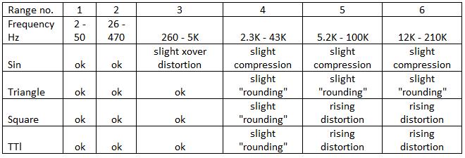 Frequency coverage 2Hz to around 200KHz in 6 switched ranges