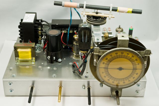 Building the radio needed a noteworthy part of mechanical and wood works which took its time. Also the electrical part needed some care and caused some troubles. For some time I was hunting for the reason of the rather strong oscillator frequency drift until I figured out that my shielded wiring was making the problem – the capacitance of these wires was extremely sensitive to temperature, so I removed all of this stuff again.