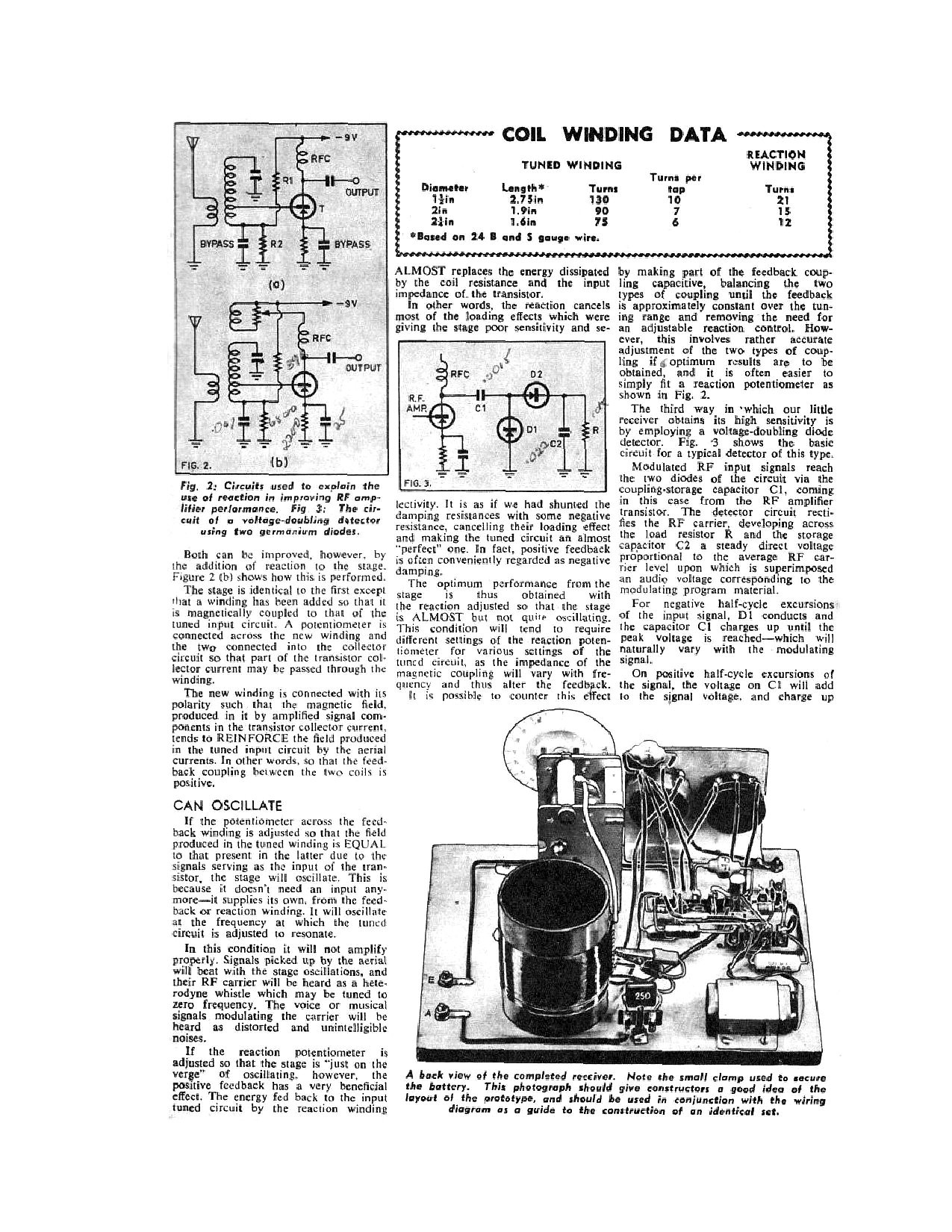 I followed the circuit and general layout of Jim Rowe's original but the regeneration was touchy and would go from none to full oscillation harshly. I rewound the coil using 44/40 litz wire on a thin styrene former with no taps. It is now possible to sneak up on the "sweet spot" smoothly.